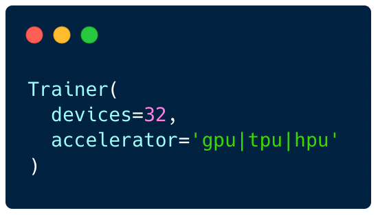 Use multiple GPUs/TPUs/HPUs etc... without code changes.