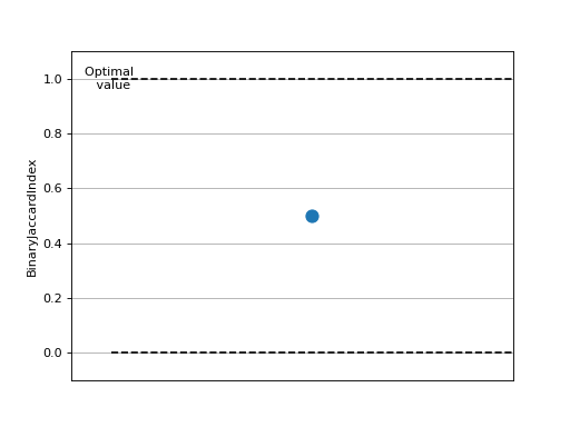 >>> # Example plotting a single value >>> from torch import rand, randint >>> from torchmetrics.classification import BinaryJaccardIndex >>> metric = BinaryJaccardIndex() >>> metric.update(rand(10), randint(2,(10,))) >>> fig_, ax_ = metric.plot()