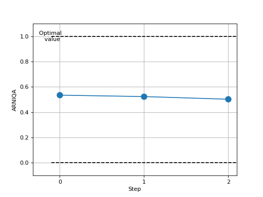 >>> # Example plotting a single value >>> import torch >>> from torchmetrics.image.arniqa import ARNIQA >>> metric = ARNIQA(regressor_dataset='koniq10k') >>> metric.update(torch.rand(8, 3, 224, 224)) >>> fig_, ax_ = metric.plot()