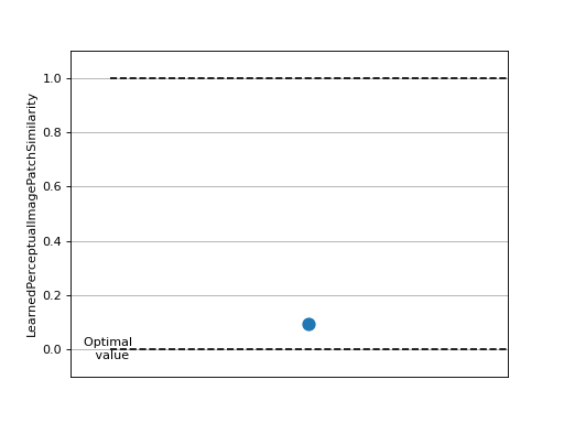 >>> # Example plotting a single value >>> import torch >>> from torchmetrics.image.lpip import LearnedPerceptualImagePatchSimilarity >>> metric = LearnedPerceptualImagePatchSimilarity(net_type='squeeze') >>> metric.update(torch.rand(10, 3, 100, 100), torch.rand(10, 3, 100, 100)) >>> fig_, ax_ = metric.plot()