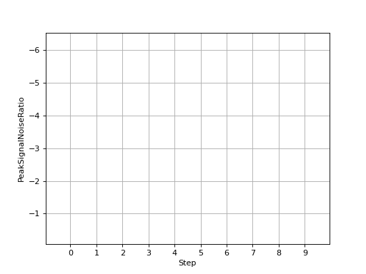 >>> # Example plotting multiple values >>> import torch >>> from torchmetrics.image import PeakSignalNoiseRatio >>> metric = PeakSignalNoiseRatio(data_range=1.0) >>> preds = torch.tensor([[0.0, 1.0], [2.0, 3.0]]) >>> target = torch.tensor([[3.0, 2.0], [1.0, 0.0]]) >>> values = [ ] >>> for _ in range(10): ... values.append(metric(preds, target)) >>> fig_, ax_ = metric.plot(values)