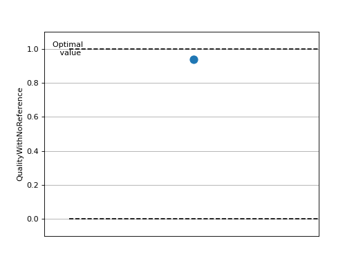 >>> # Example plotting a single value >>> from torch import rand >>> from torchmetrics.image import QualityWithNoReference >>> preds = rand([16, 3, 32, 32]) >>> target = { ... 'ms': rand([16, 3, 16, 16]), ... 'pan': rand([16, 3, 32, 32]), ... } >>> metric = QualityWithNoReference() >>> metric.update(preds, target) >>> fig_, ax_ = metric.plot()