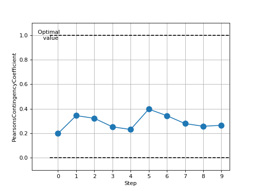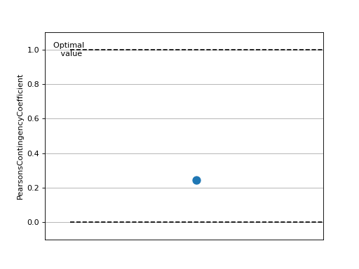 predsandtarget, respectively.Pearson’s Contingency Coefficient is a symmetric coefficient, i.e. \(Pearson(preds, target) = Pearson(target, preds)\).