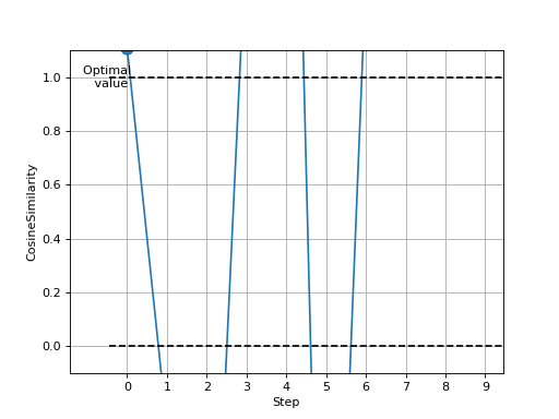 >>> from torch import randn >>> # Example plotting multiple values >>> from torchmetrics.regression import CosineSimilarity >>> metric = CosineSimilarity() >>> values = [] >>> for _ in range(10): ... values.append(metric(randn(10,2), randn(10,2))) >>> fig, ax = metric.plot(values)