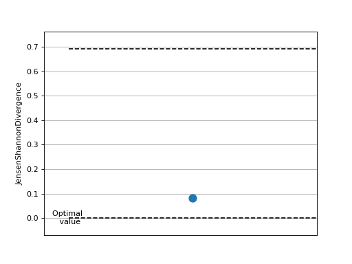 >>> from torch import randn >>> # Example plotting a single value >>> from torchmetrics.regression import JensenShannonDivergence >>> metric = JensenShannonDivergence() >>> metric.update(randn(10,3).softmax(dim=-1), randn(10,3).softmax(dim=-1)) >>> fig_, ax_ = metric.plot()