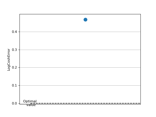>>> from torch import randn >>> # Example plotting a single value >>> from torchmetrics.regression import LogCoshError >>> metric = LogCoshError() >>> metric.update(randn(10,), randn(10,)) >>> fig_, ax_ = metric.plot()