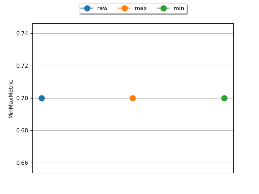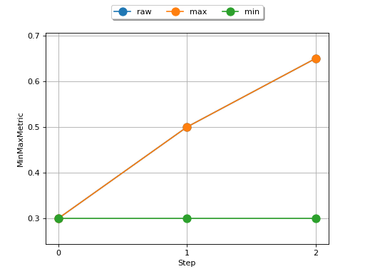 >>> # Example plotting multiple values >>> import torch >>> from torchmetrics.wrappers import MinMaxMetric >>> from torchmetrics.classification import BinaryAccuracy >>> metric = MinMaxMetric(BinaryAccuracy()) >>> values = [ ] >>> for _ in range(3): ... values.append(metric(torch.randint(2, (20,)), torch.randint(2, (20,)))) >>> fig_, ax_ = metric.plot(values)
