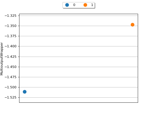 >>> # Example plotting a single value >>> import torch >>> from torchmetrics.wrappers import MultioutputWrapper >>> from torchmetrics.regression import R2Score >>> metric = MultioutputWrapper(R2Score(), 2) >>> metric.update(torch.randn(20, 2), torch.randn(20, 2)) >>> fig_, ax_ = metric.plot()